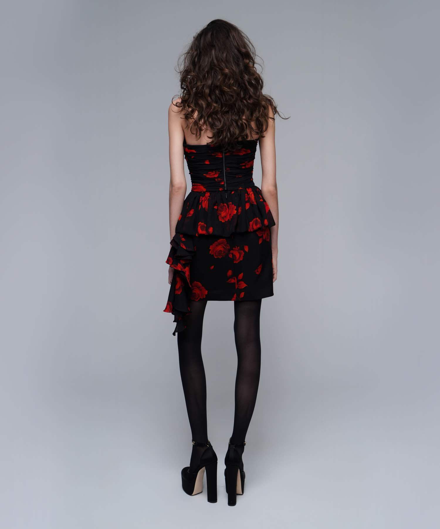 Rosalie, топ корсетный из черного шифона с крупными красными цветами